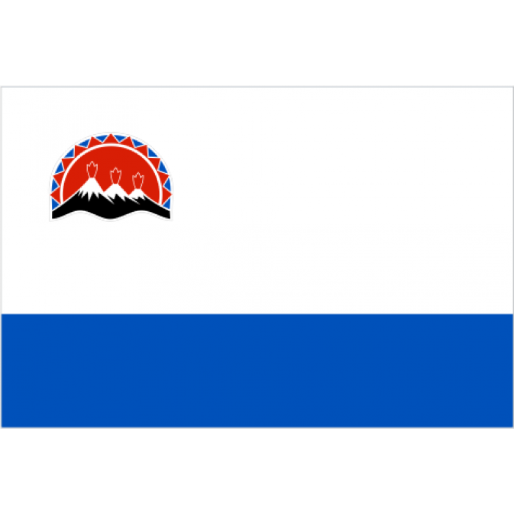 Флаг Камчатского края представляет собой прямоугольное полотнище из двух горизонтальных полос: верхней — белого, нижней — лазурного цвета с изображением фигур герба Камчатского края, расположенных в крыже: три разновеликих вулкана чёрным цветом с посеребрёнными вершинами, с выходящим из каждой вершины червлёным пламенем в окружении серебряного дыма. За вулканами червлением по серебру изображено восходящее солнце. Вокруг солнца — национальный орнамент, состоящий из червлёных и лазурных треугольников, обведённых серебряным кантом. Червлёные треугольники расположены на внутренней стороне орнамента и обращены вершинами наружу. Лазурные треугольники — на внешней стороне орнамента и обращены вершинами внутрь.