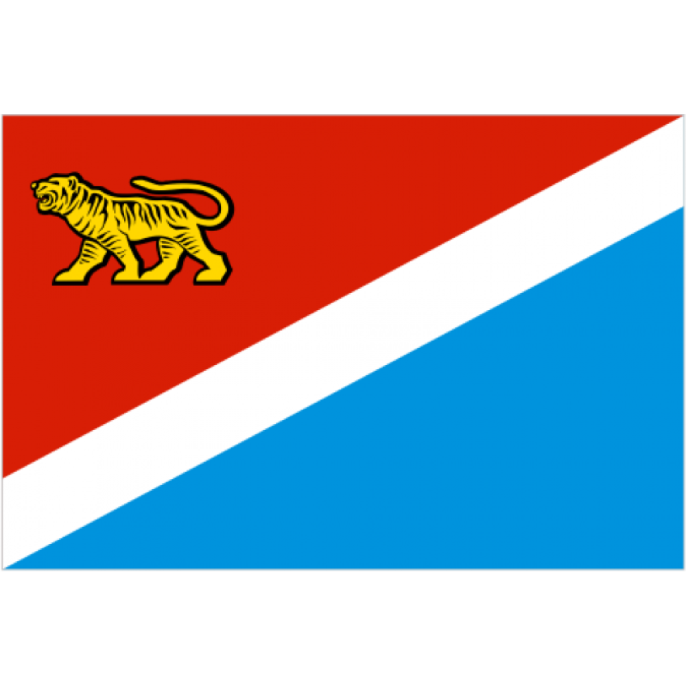 Флаг Приморского края представляет собой прямоугольное полотнище, разделённое по диагонали белой полосой и состоящее из двух треугольников: верхнего, располагаемого у древка, — красного цвета и нижнего — синего цвета. В верхнем углу у древка — золотое изображение идущего уссурийского тигра. Отношение ширины флага к его длине — 2:3.